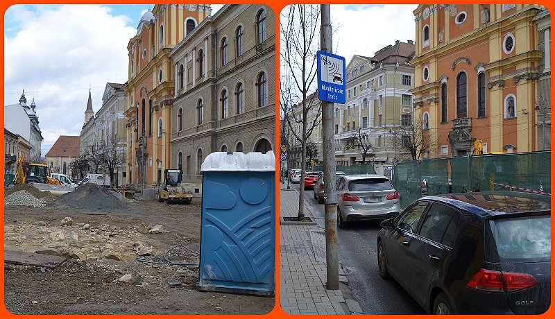 Kezdjük egy forgalmas utcával. Jelen pillanatban az Egyetem (Universității) utca teljes hosszában építőtelep, a jobb oldalon, ha a Főtér felé indulunk a Petőfi (Avram Iancu) utca irányából. Ennek az volt az egyenes következménye, hogy (átmenetileg) irdatlan dugók alakultak ki a Főtér irányába. Persze, megint azt lehet mondani, megéri, hiszen többek között visszakerül a régi helyére a Szentpéteri templom mögé száműzött Mária-oszlop. És igaz, hogy még hátra van az utca másik oldala, na de akkor már kész lesz az egyik. A gyalogos közlekedés zavartalanabb az Egyetem utcán, hiszen a New York szálló felőli oldal még járható. Aki viszont a szemközti boltok valamelyikébe akar bemenni, csak óvatosan.