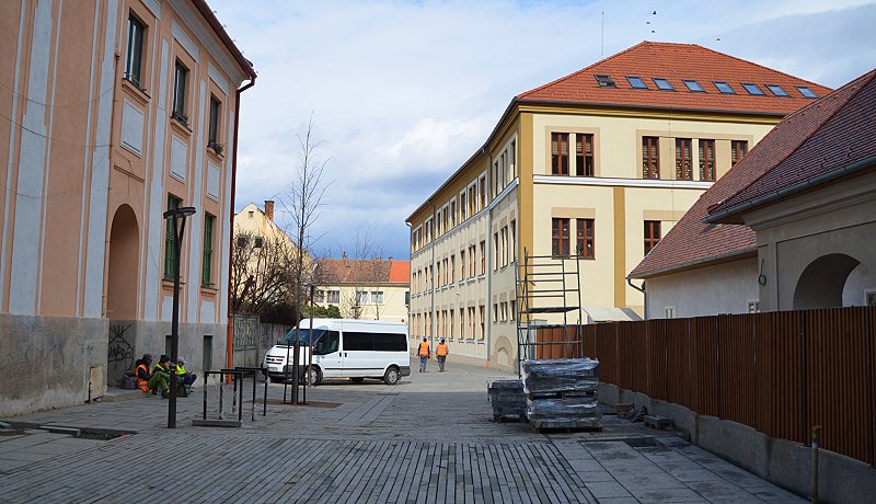 És ezzel bezárul a kör. Ha az ember elindul a Farkas utca eleje felé, elhalad a Báthory líceum és a Babeș-Bolyai Tudományegyetem központi épülete között és belép az Egyetem utcai építőtelepre, ahol serényen dolgoznak az illetékesek.