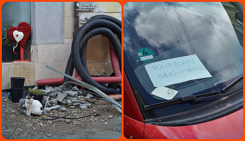 Na de az ember kedves dolgokkal, illetve potenciálisan hasznos információkkal is találkozhat közben. Ilyen kedves dolog volt a rumli kellős közepén sztoikus türelemmel ücsörgő macsek. Melyhez hasonló sztoikus türelmet ajánlunk minden polgárnak, aki a megújuló utcák lakója. A hasznos információ pedig az, hogy azok az autósok, akik nem tudják járművüket a házuk udvarán parkolni (és nem is viszik el jó messzire a központtól), ilyeneket csinálnak: odaírják szépen, hogy ők Szentegyház utcai lakók és leparkolnak a szomszéd utcában, ahol lehet.