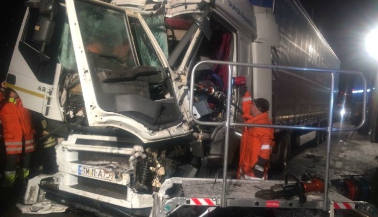 A Temes megyei rendőrkapitányság szerint a hókotró sofőrje nem adott elsőbbséget, és nem biztosította be magát, mielőtt rátért a 6-os jelzésű országútra Temesrékas és Lugos között. A kamion sofőrje a roncsok közé szorult, mentővel szállították kórházba.