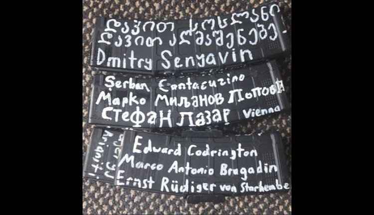 Szerepel még a fegyvereken Ernst Rüdiger von Starhemberg tábornok neve is, ő védte Bécset 1683-ban, vagy a törököket az 1827-es navarinói csatában legyőző Edward Codrington admirálisé és a velencei Marcantonio Bragadin neve is, aki a ciprusi Famagustát védte a törököktől az 1570-es évek elején.