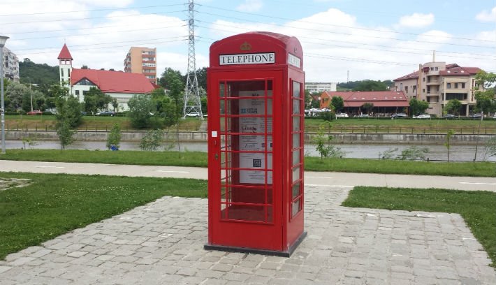 2. Mellette egy klasszikus, „ezeréves” londoni telefonfülke pompázik. Szép is, piros is, aránylag érintetlen is, a British Council testvéri Kolozsvár-szeretetének jele.