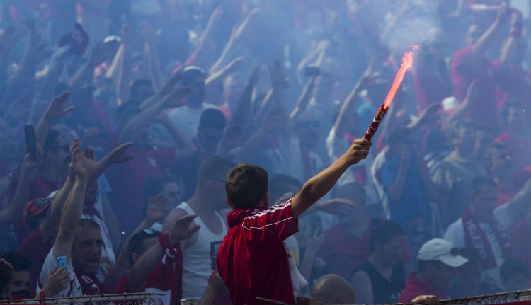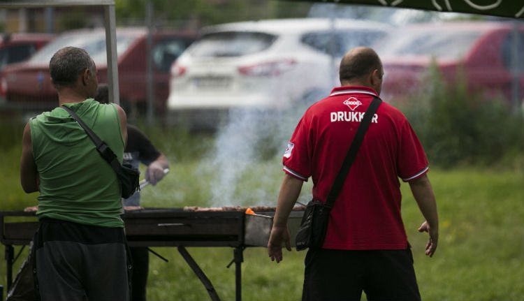 Alapos szurkolói felvonulás vezette fel a meccset, a Vasútállomástól a stadionig.