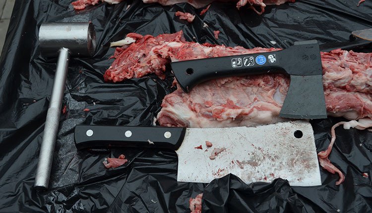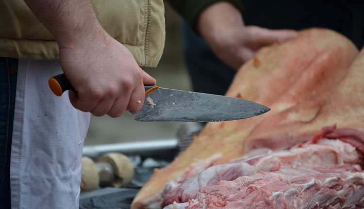 ...ami nem is csoda: az ilyen kézhez álló és talán még szőrszálhasogatásra is alkalmas bontókés csak villan egyet, máris válik le a hasszalonna a bordákról.