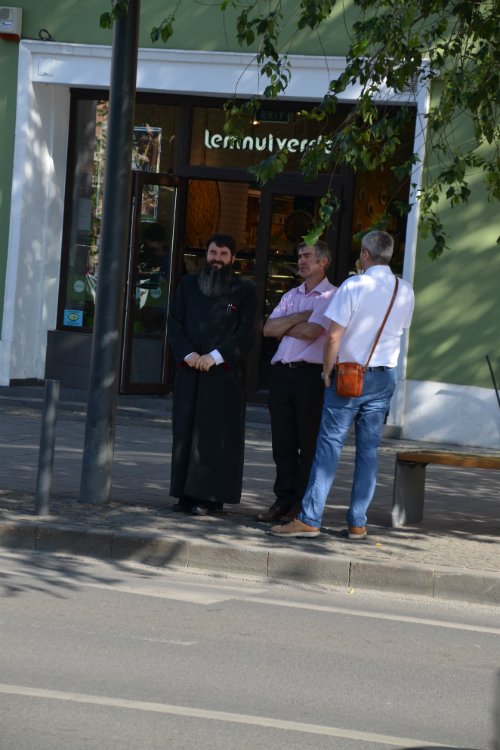A túloldalról egy ortodox pópa figyelte a fejleményeket diszkréten mosolyogva. Feltehetőleg az erkölcsi rend éber őreként volt jelen.