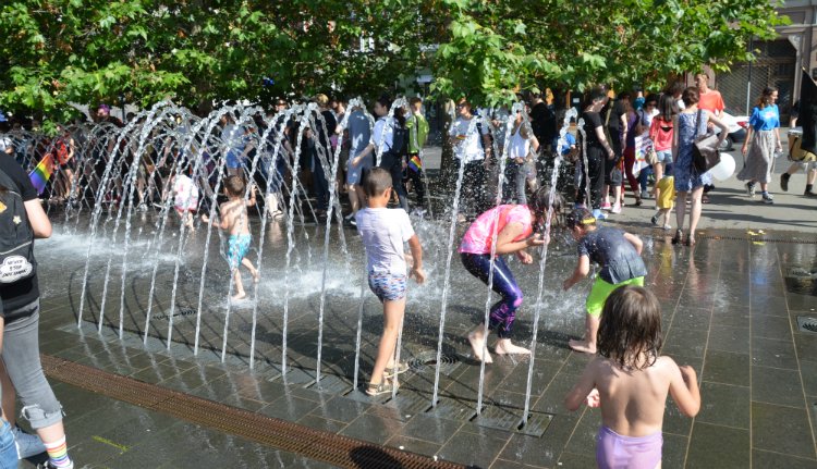 A legjobban a gyerekek érezték magukat, akiket nem érdekelt se a hőség, se a Pride: jót fürödtek a főtéri szökőkút vizében.