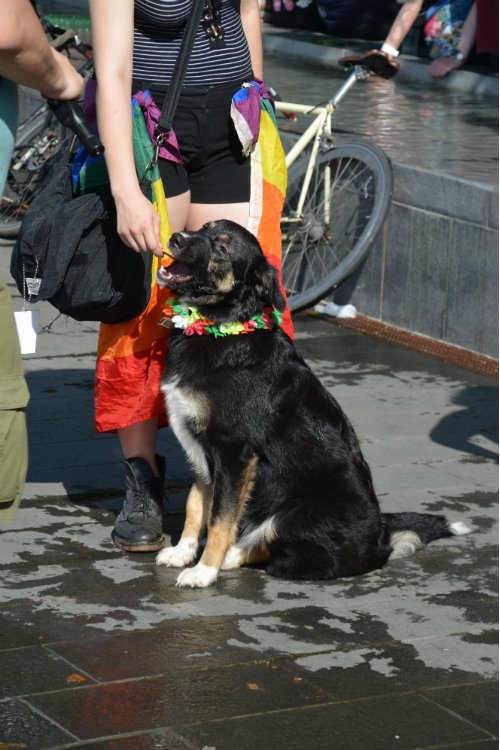 A kutyák viszont megszenvedték a Pride-ot a hőség miatt. Legszívesebben becsobbantak volna a gyerekek mellé, de hát az a fránya póráz, meg a szabályok...