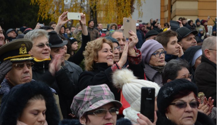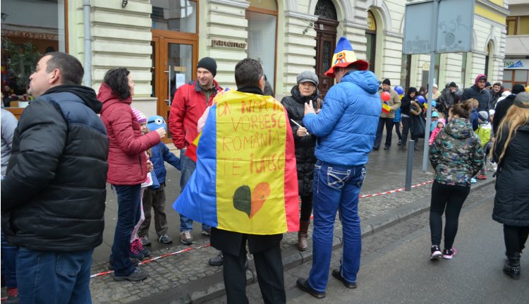 Még útban a helyszín felé találkoztunk egy polgárral, aki épp román zászlót tűzött a boltja fölé. A polgár szóba is elegyedett velünk. Ezt mondta: Én kiteszem a zászlót, mert szeretem a hazámat, de itt most olyan szar az élet, hogy megyek Spanyolországba. Ezzel meg is adta az alaphangulatot az ünnepnek.