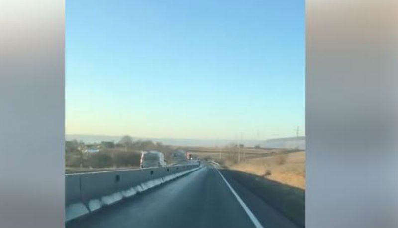A bátor és/vagy eszelős sofőr hosszasan autózott a forgalommal szemben egy olyan szakaszon, ahol legfeljebb az árokba térhetett volna ki, mivel a két forgalmi sávot betonfal választja el egymástól.