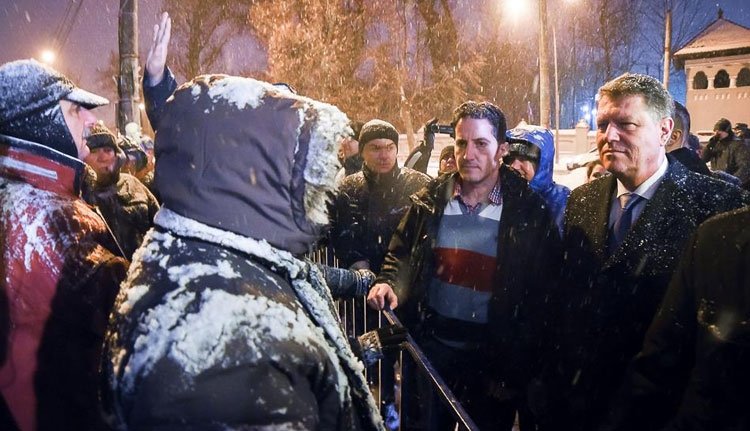 Klaus Iohannis államelnök szerdán este kisétált a Cotroceni-palota előtt tüntető emberek közé, azzal a szándékkal, hogy párbeszédbe elegyedjen velük. A dialógus azonban nem volt túlságosan sikeres, mivel a néhányszáz fős tömeg kifütyülte az elnököt, többen feléje köpködtek, és azt kiabálták, hogy a viselkedése nem államfőhöz méltó.