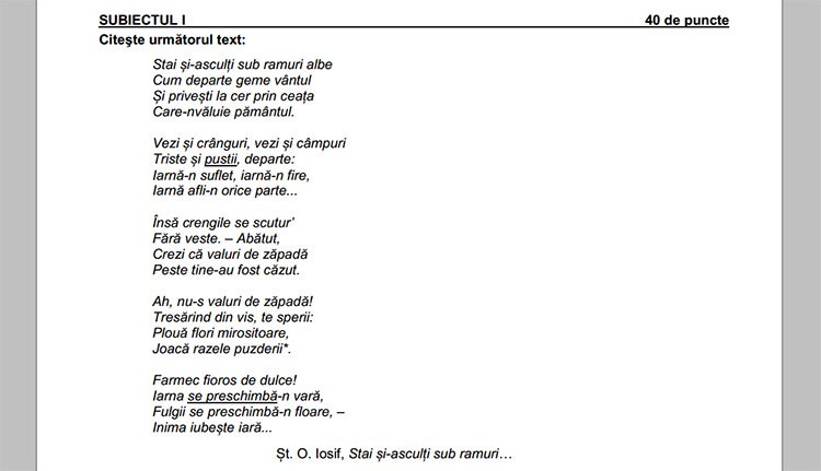 Ştefan Octavian Iosif román költőnek tulajdonítja Heinrich Heine egyik versét a kedden tartott nyolcadikos próbafelmérő román nyelv és irodalom vizsgájának első tétele.