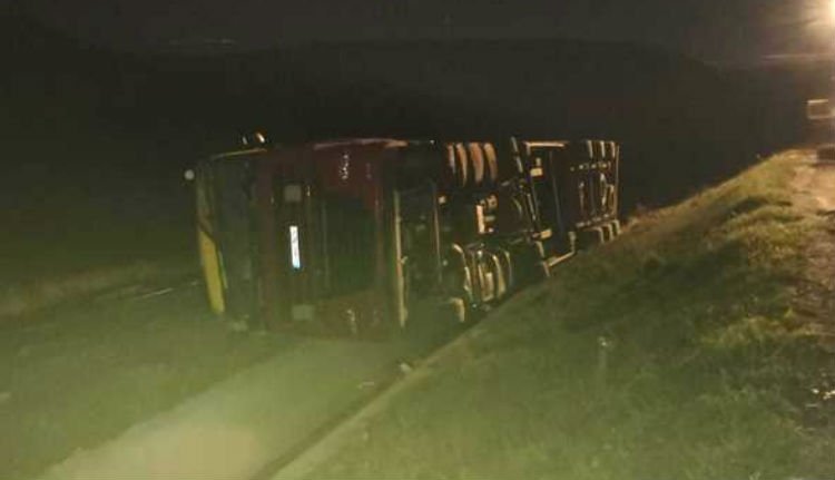 Felborult egy veszélyes anyagot szállító kamion a kolozsvári körgyűrűn vasárnap este, a baleset oka nagy valószínűséggel abban keresendő, hogy a sofőr ittas volt.