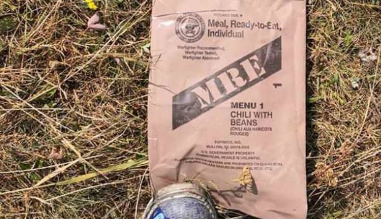 A „lelet” értékét növeli, hogy a jelek szerint gyakorlatozó amerikai katonák hagyták hátra, miután jóízűen falatoztak egyet a természet lágy ölén.