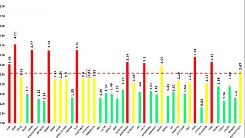 A megyei fertőzöttségi ráta Arad, Bihar és Kolozs megyében a legmagasabb – ebben a sorrendben.