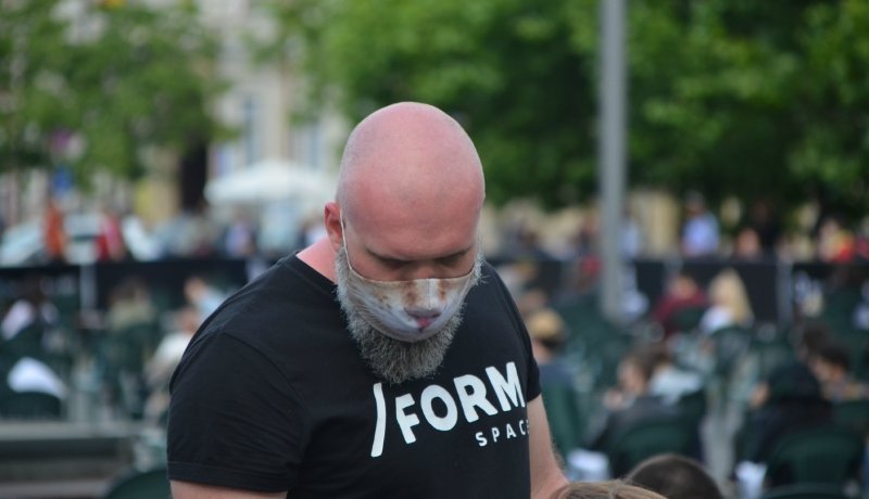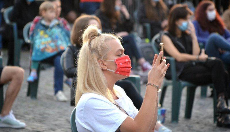 A hangszórókból folyamatosan ömlött a figyelmeztetés: az esemény alatt végig kötelező a maszkviselés, kötelező a másfél méteres távolságtartás, a közönség ne álljon fel a székről, a koncert végén szigorú rendben hagyja el a teret satöbbi. A szervezők tőlük telhetően igyekeztek oldani a túlvilági hangulatot. Például ilyen vicces maszkokkal.