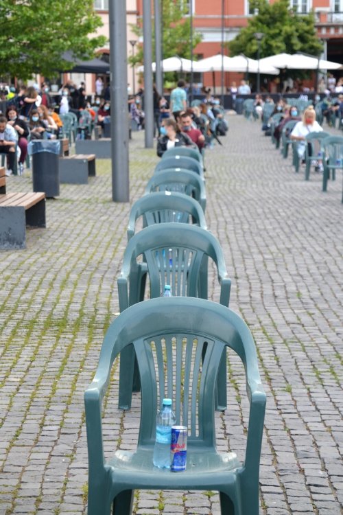 Így nézett ki a kordonnal elkerített küzdőtér nézőtér. Szabadtéri operaelőaadásokon láttunk már ilyet. Na de rock-koncerten? Huhh! Viszont tény: a székek szigorúan betartották a kötelező távolságot.