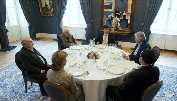 Kallós Zoltán Kossuth-díjas néprajzkutatót, a Corvin-lánc kitüntetettjét, Novák Ferenc Kossuth- és Erkel Ferenc-díjas koreográfust, rendezőt és Csukás István Kossuth- és József Attila-díjas költőt, írót szerdán tiszteletvacsorán látta vendégül Áder János köztársasági elnök.