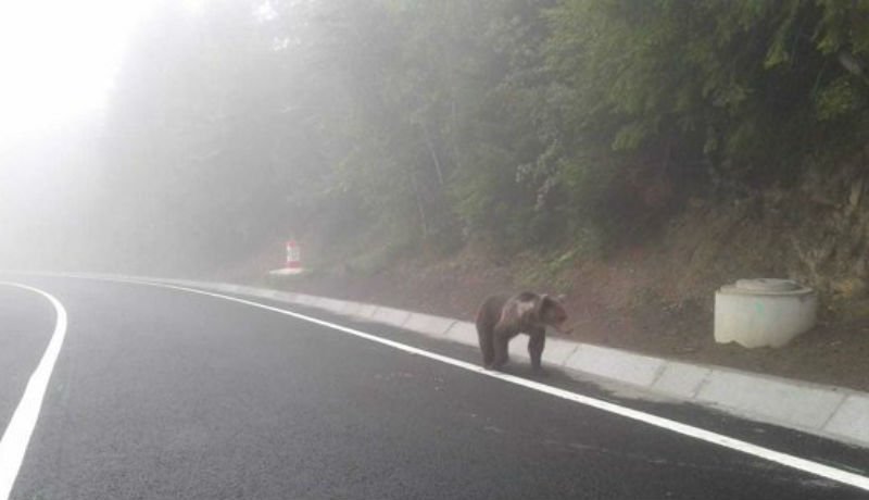 A medve az úttesten császkált, amikor egy autó telibe találta.
