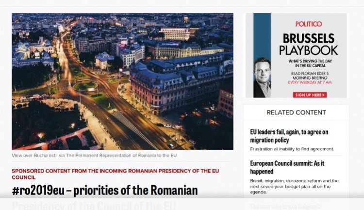Ami másoknak ingyen jár, azért a román kormánynak fizetni kell, valószínűleg nem is keveset. Fizetett hirdetésben reklámozza magát ugyanis az Európai Unió elnökségét átvevő Dăncilă-kabinet a Politico szaklapban. A nagy presztízsű amerikai politikai lap úgy tűnik, másként nem volt kíváncsi a véleményére.