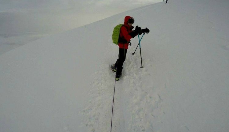 A címlapfotón Gulácsi Erik látható az Elbruson (Fotó: Facebook/ Clubul Montan Altitudine)
