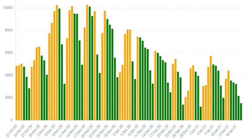 Jó hír, hogy a koronavírushoz köthető halálesetek száma hétfő délelőtt 10 óráig 50 volt, ami október eleje óta a legalacsonyabb szám.