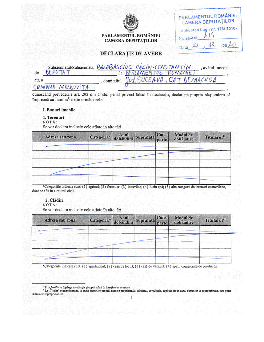 Az illető neve Călin Balabașciuc, és mindezt annak kapcsán állítja, hogy a parlament honlapján feltüntetett vagyonbevallásában a világon semmit nem tüntetett fel.