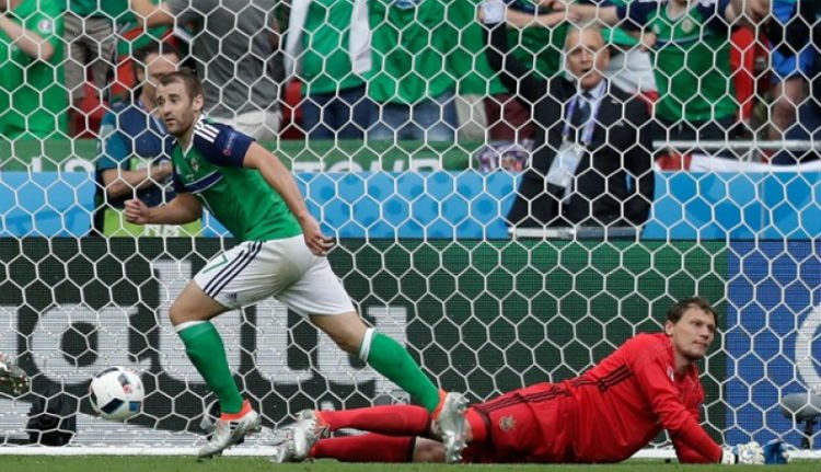 A második félidő elején aztán már gólnak örülhettek az északírek: egy beívelt szabadrúgást