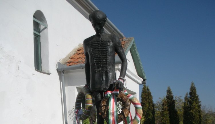 Elavult kiállítás kis emlékházban a templom udvarán – ehelyett épülne egy kulturális és egyházi központ a Kölcsey-út részeként.