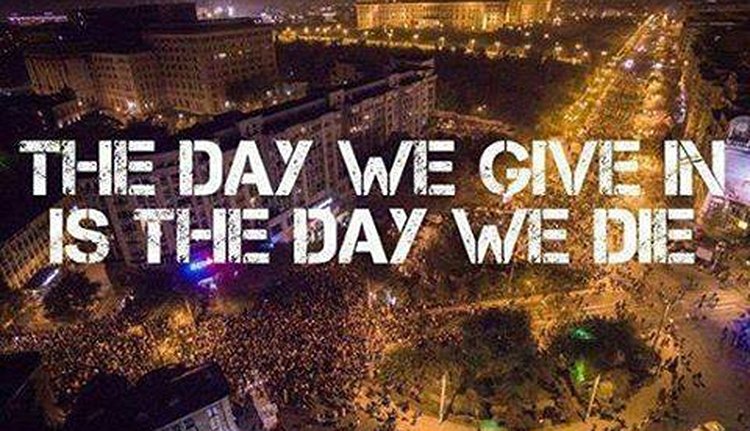 A tüntetések Facebook-eseményeinek többsége esetében a fejlécben a 2015. novemberi Colectiv-tűzvész utáni utcai megmozdulások jelszava és képe látható.