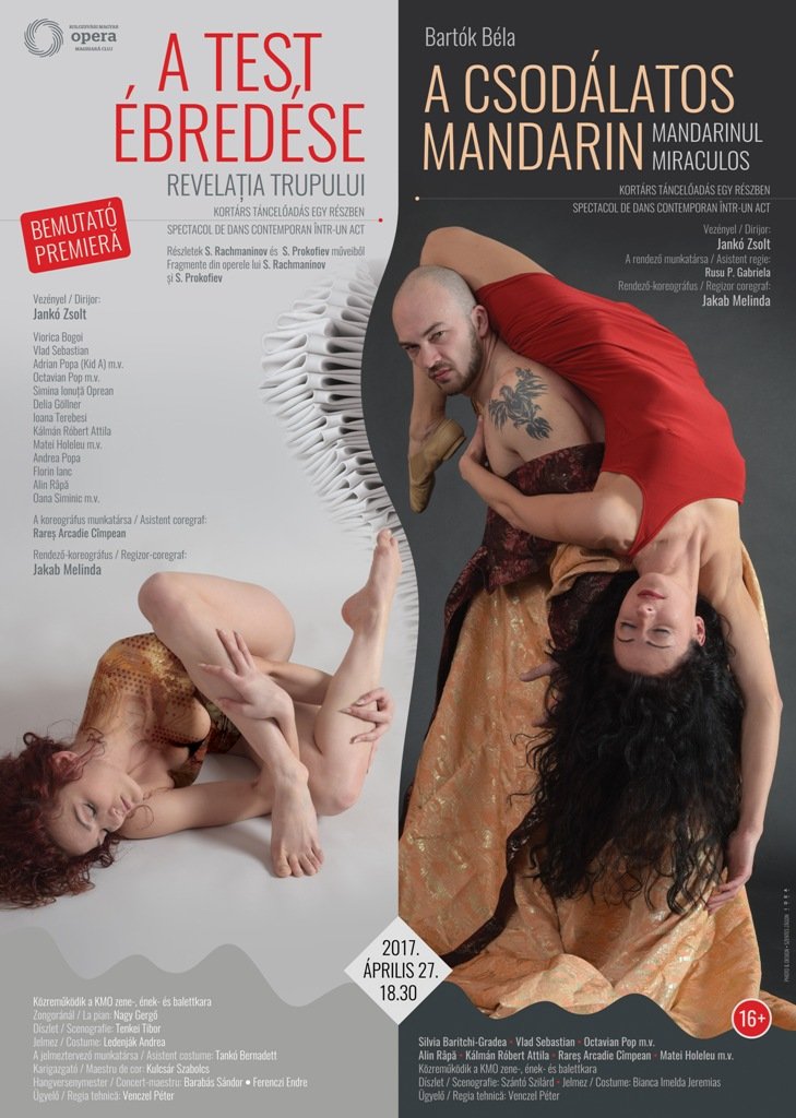 Április 27-én 18.30-tól Jakab Melinda rendezésében először láthatja a kolozsvári közönség A test ébredése című, Sergei Rachmaninov és Sergei Prokofiev zenéjére épülő egyrészes koreográfiát. Az est második felében Bartók Béla A csodálatos mandarin című műve kerül kortárs táncmozgással a színpadra külföldön is elismert fiatal táncművészek előadásában.