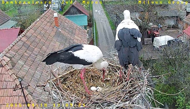 A sáromberki sztárgólyákat nem zavarja a kamera, ezt mutatja, hogy három nappal ezelőtt megjelent az első tojás, pénteken pedig a második is a fészekben.