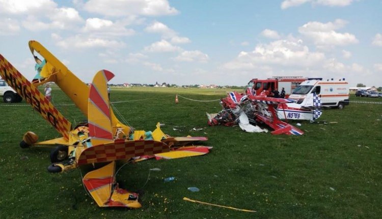 Két kisméretű sportrepülőgép ütközött pilótagyakorlat közben a Szucsáva megyei Frătăuţii Vechi településen. Mindkét gép lezuhant, a pilóták a géproncsok közé szorultak. A katasztrófavédelem közlése szerint egyikük, egy bukaresti férfi meghalt.