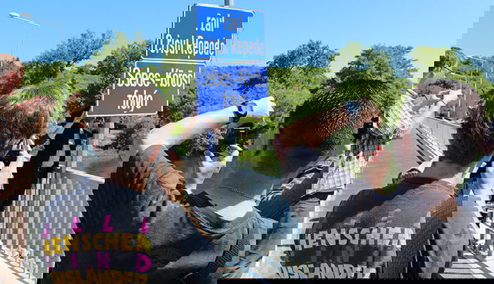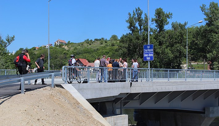 A pár percet igénybe vevő táblaszerelés után Csomortányi a sajtónak kifejtette: örül, hogy új híddal gazdagodott a város, annak viszont nem, hogy az önkormányzat már megint lefelejtette a magyar feliratot. Úgy gondolták, egy figyelemfelkeltő akció keretében pótolják a hiányosságot. Szeretnék elérni, hogy az önkormányzat a többi hídfő esetében is helyezze ki ezeket a feliratokat. Legutóbb az Őssi és a Rogériusz városnegyedeket összekötő hídnál helyeztek el magyar nyelvű táblát, de a „figyelmes és szorgalmas kezek” alig négy órán belül le is szerelték.