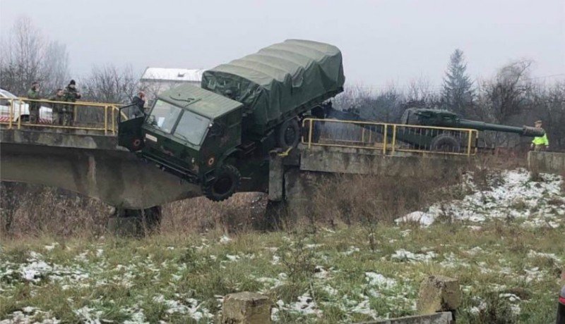 Az egyik katonai teherautó sofőrje ugyanis a Szamoson való átkeléskor nem követte kellő pontossággal a Dés határában lévő híd nyomvonalát, így fél kerékkel lelógatta a járművet a hídról.