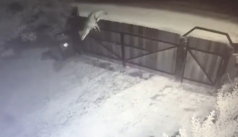 A Székelyhon beszámolója szerint a biztonsági kamera által rögzített felvételen jól látható, ahogy a hatalmas állat gond nélkül átugrik a magas kapun, elkezdi üldözni az udvaron lévő kutyákat, majd kis idő múlva az egyik állattal a szájában távozik.