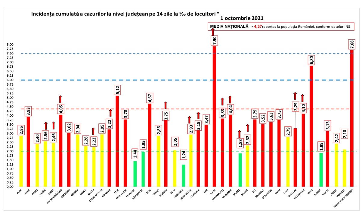Bukarestben – ahol a fertőzöttségi ráta már a 7,5-öt is meghaladta – csaknem 2500 új fertőzöttet regisztráltak, de 15 olyan megye is van az országban, ahol több mint 200 teszt lett pozitív.