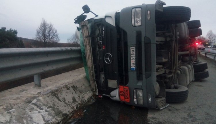 Az országos rendőr-főkapitányság közlekedési osztályának közleménye szerint a gépkocsivezető elveszítette uralmát a kamion fölött, és egy kanyarban a sáncba borult.