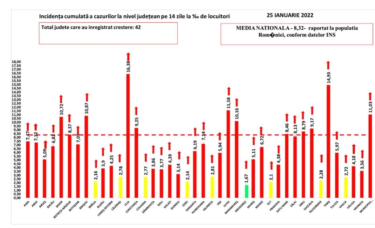 Közben kilenc kivétellel az összes megye vörös zónás a fertőzöttségi ráta alapján, Kolozs megye továbbra is a legrosszabb számokat produkálja – 16 fertőzött jut ezer lakosra –, de Temes, Ilfov, Máramaros és Bukarest is 10 ezrelék fölött jár.