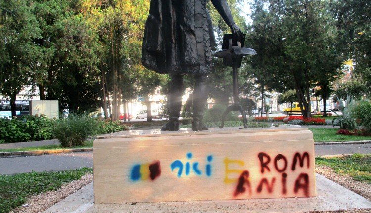 Szerdára virradóra román nacionalista üzenet került fel a március 15-én felavatott Széchenyi István-szobor talapzatára – erről Kereskényi Gábor szatmárnémeti polgármester a Facebook-oldalán számolt be egy fotós bejegyzésben. A szoborgyalázók egy trikolórt festettek a talapzatra és mellé festékspray-el írták fel, hogy „Aici e România” (Ez itt Románia).