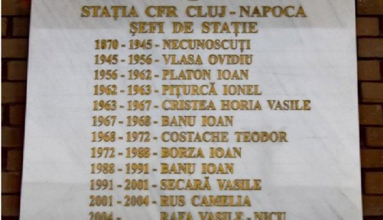 Magyar–román vasutas együttműködésnek köszönhetően sikerül emléket állítani az egykori magyar és német állomásfőnököknek Kolozsvárt. A Román Állami Vasúttársaság (CFR) kincses városi regionális kirendeltsége tavaly májusban helyezett el márványtáblát a helyi pályaudvar épületének homlokzatára, felsorolva az egykori állomásfőnökök nevét és tevékenységük időszakát.