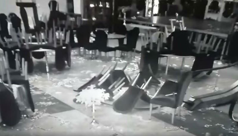 A képek magukért beszélnek: a székek egy része felborogatva a padlón hever, miközben a helyiséget szinte teljes egészében konfetti borítja.