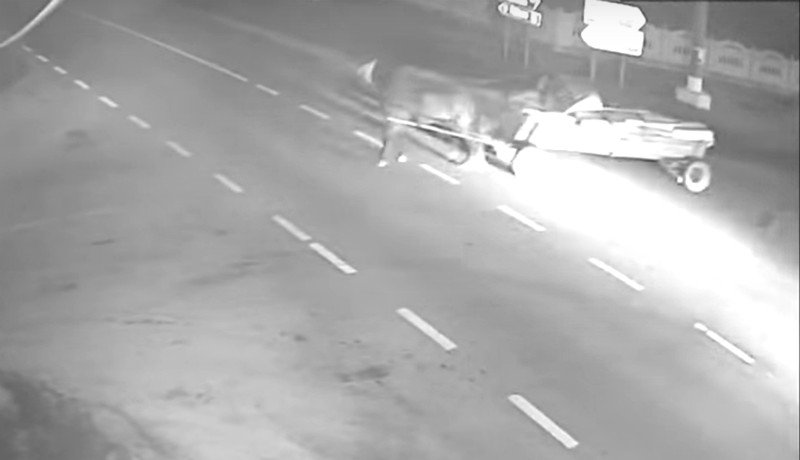 A piros sarokban egy több száz lóerős, nagy sebességgel közlekedő BMW, a kék sarokban egy egy lóerős, fával megrakott, kivilágítatlan szekér, amelyik úgy fordul rá éjszaka a főútra, mintha nem lenne holnap. Az erőviszonyok felvázolása után gondolom nem sokan fogadnának a szekeres versenyzőre, de ami azt illeti a kocsis és a ló csodával határos módon csaknem sértetlenül megúszta a robbanásszerű ütközést – miközben a szekér gyakorlatilag gyújtósként végezte –, a BMW sofőrjét viszont mellkasi és hasi sérülésekkel szállították kórházba.