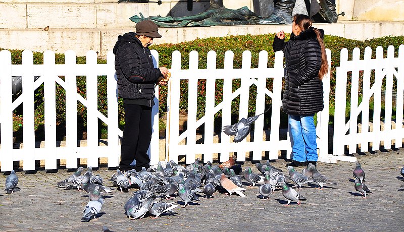 Hát, ez volna a pandémiát követő első igazán szabad, maszktalan kolozsvári karácsonyi vásár látlelete. Azonban egy igazi, békebeli, ha tetszik, múlt századi kép nélkül nem hagyhatjuk el a kincses főteret. A galambokat etető ember látványa békét teremt a zajtól, illatoktól, eget verő áraktól és többnyelvűségi paradoxonoktól enyhén megzavarodott lélekben. Melyhez hasonló békét kívánunk minden kedves Olvasónak!
