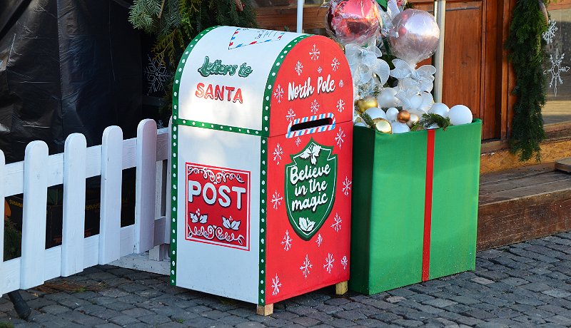 Akinek pedig nem tetszenek a csillagászati árak, panaszlevelet írhat a Mikulásnak. A vásártéren van neki egy szép nagy postaládája, oda be lehet dobni. A postaláda érdekessége egyébként az, hogy kiváló példája a ló másik oldalának: kizárólag angol szavak virítanak rajta. Ha az ember sokáig nézi meredten, könnyedén Londonban képzelheti magát. És ez végül is jó, nem?