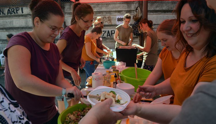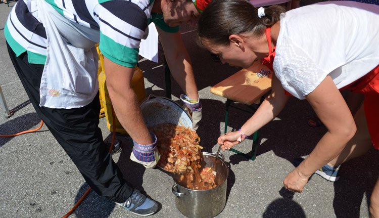 A puliszkát ezzel a zöldségraguval kombinálva elnyerték a leglátványosabb fogás díját. Mert a végén természetesen minden csapatot díjaztak, még ha itt a gasztroverseny nem is ment épp késélre.