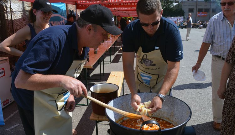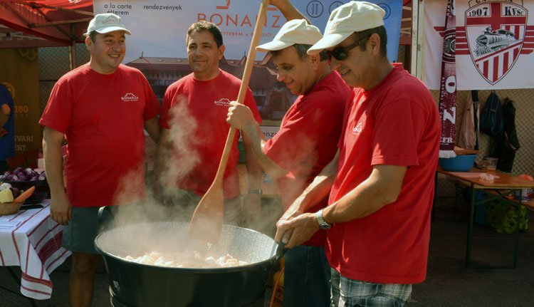 Idén 11 csapat nevezett be, és készült már szombat reggel az ínycsiklandoztatásra az Apáczai Csere János líceum udvarán. A szervezők elsősorban köreteket vártak tőlük, de se ők, se az örömfőzők nem vették komolyan ezt a versenykiírást. Azért köretet, mert az idei központi főfogás egy szürkemarha volt, amelyet (akit?) Iglódi Ferenc ökörsütő mester és csapata alakított át legelő jószágból ehető jószággá.