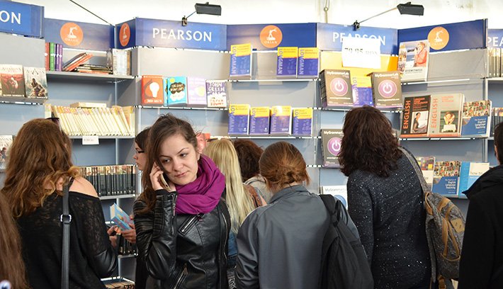 Elég nagy a tülekedés az angol nyelvű standok előtt. Főleg a fiatalok körében népszerűek.