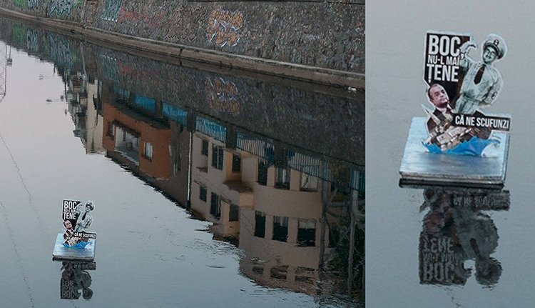 Az installációk Emil Boc polgármestert és Ionuţ Ţenét, a városháza kulturális bizottságának nemrég kinevezett vezetőjét ábrázolják: Ţenét A diktátor című, Hitlert parodizáló Chaplin-film Hynkel-figurájaként, amint elsüllyeszti a Kolozsvár-hajót, amelyen Boc is utazik. „Boc nu-l mai Ţene, că ne scufunzi” – a román felirat lefordíthatatlan szójátékkal arra kéri a polgármestert, hogy ne tartsa meg Ţenét a kulturális bizottság vezetői tisztségében, mivel ezzel elsüllyeszti a várost.