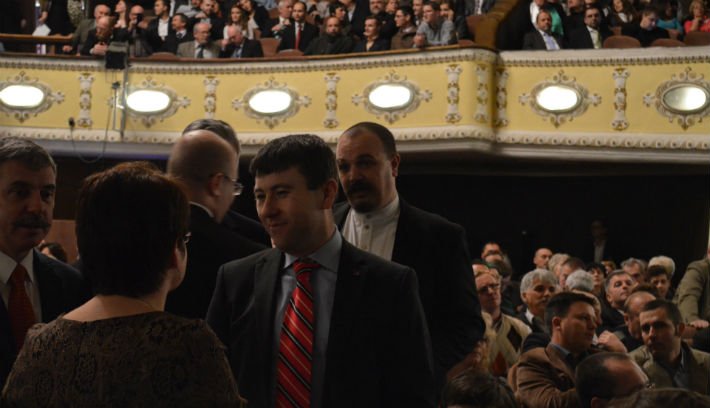 A különböző helyi megemlékezések után az RMDSZ láthatóan kitett magáért: a Kolozsvári Magyar Opera épületében szombat délután az erdélyi és Kárpát-medencei politikai élet jelentős szereplői mellett összegyűlt a hazai kulturális elit tekintélyes hányada is. Az egy négyzetméterre eső politikussűrűség ennél nagyobb már nem is lehet, országos potentátok és területi küldöttek cserélik az eszmét az előtérben, az Írj levelet Zsoltnak feliratú tábla előtt.