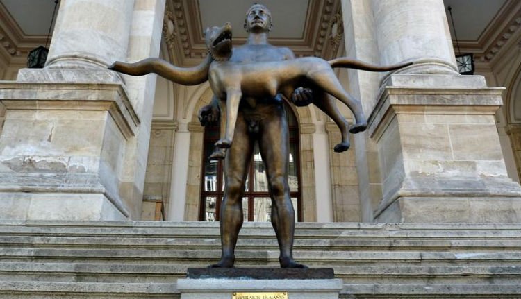 A Sorin Oprescu főpolgármesteri mandátuma idején felállított szobor olyan, mintha az abszurd humor valamelyik nagyágyúja találta volna ki: